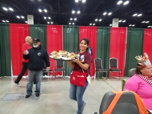 Dec. 27, 2017 Citizen Airmen continue annual holiday tradition; feeding Alamo City families Citizen Airmen from the Alamo Wing joined forces with 1,000 volunteers from the Greater San Antonio Area in serving more than 7,500 meals during the afternoon shift at H-E-B's 25th Annual Feast of Sharing holiday dinner on Dec. 23, 2017 at the Henry B. Gonzalez Convention Center in San Antonio,