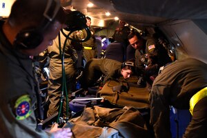 Oct. 9, 2015 433rd AES creating critical training requirements for C-5 Thirteen members from the 433rd Aeromedical Evacuation Squadron recently completed a training mission aboard a C-5A Galaxy Oct. 7. The training included a simulated fire in the cargo hold, a patient in cardiac arrest, and a psychiatric patient in crisis.The training mission was the third flight in a