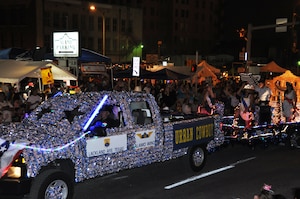 April 29, 2012 Alamo Wing revives Fiesta tradition with parade entry "Looking for love in all the wrong places, looking for love in too many faces," crooned Master Sgt. Max Hernandez, 433rd Maintenance Squadron, aboard the 433rd Airlift Wing's "Urban Cowboy"-themed float during San Antonio's 19th Annual Fiesta Flambeau Parade, April 28. The parade theme's was