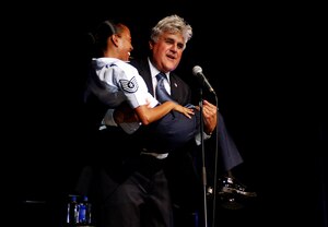 Aug. 9, 2011 Jay Leno brings laughter to the 433 AW and JBSA Jay Leno, comedian and TV personality, made a stop here during his Tour for the Troops to perform in front of more than 2,000 members of the 433rd Airlift Wing, wounded warriors and guests.The performance was also part of the Refer a Friend Tour, under the "Get 1 Now" program, an Air Force Reserve