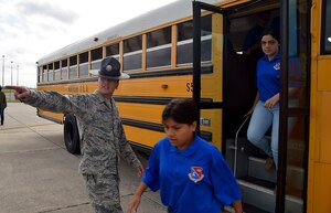 April 21, 2017 AFJROTC students visit the Alamo Wing Junior Reserve Officer Training Corps students from John Jay High School exited the bus at the 433rd Airlift Wing to the stern instructions of drill instructors April 19, 2017 here.